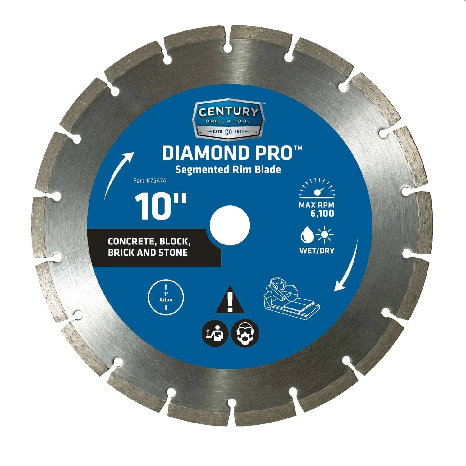 Century Drill & Tool 10 In. D X 1 In. Diamond Segmented Rim Diamond Saw Blade 1 Pk