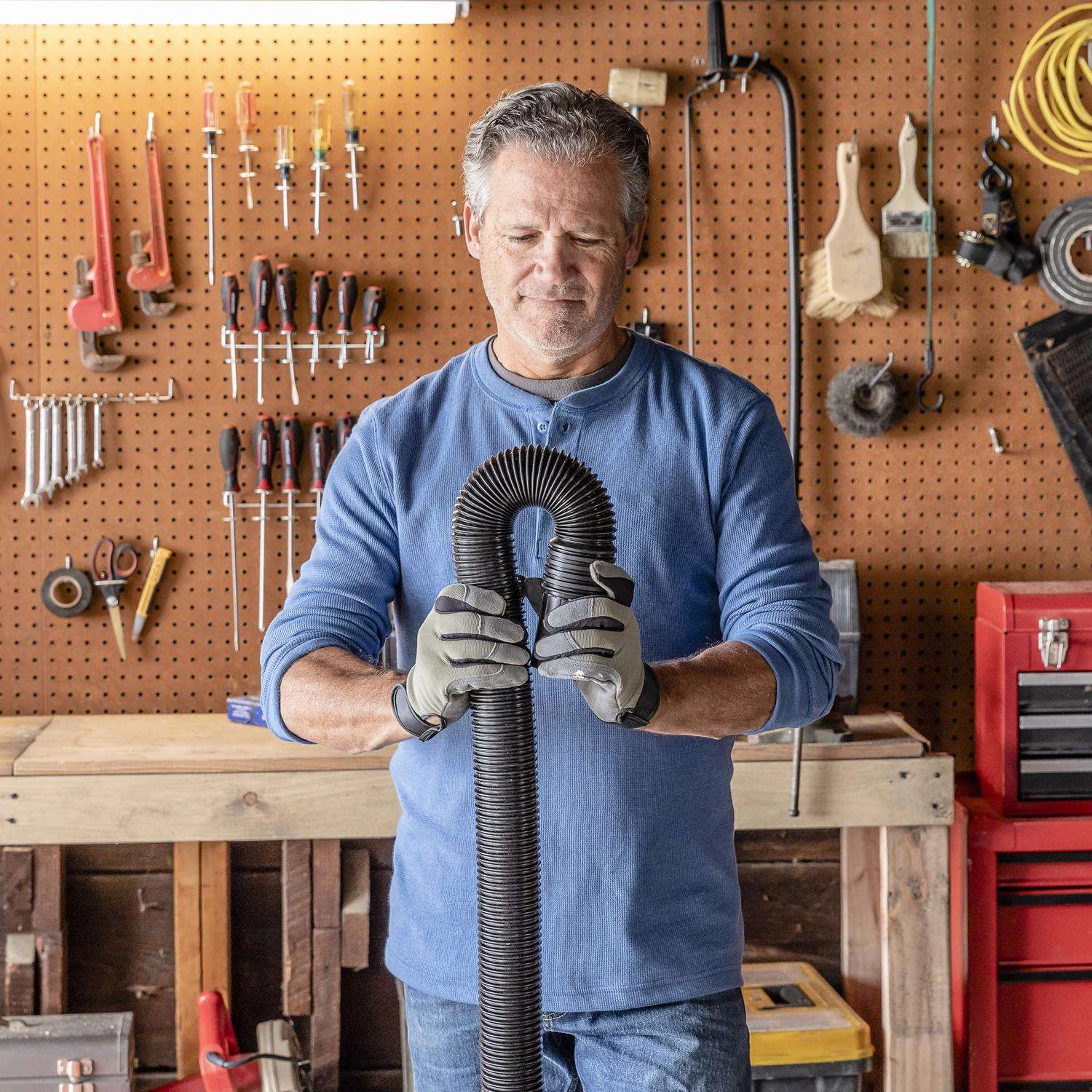 The CRAFTSMAN 2-1/2 in. x 20 ft. POS-I-LOCK Hose is a flexible replacement shop vacuum hose compatible with CRAFTSMAN wet/dry vacs. The DUAL-FLEX provides 180 degrees flexibility at both hose ends for better maneuverability and is almost 3 times the length of the standard CRAFTSMAN 2-1/2 in. x 7 ft. POS-I-LOCK hose giving you extended reach. POS-I-LOCK adapters connect easily and stay locked to vac. The swivel hose end adapters allow for greater flexibility. Includes: (1) 2-1/2 inch x 20 foot Hose, (3) Adapters. DUAL-FLEX TECHNOLOGY: DUAL-FLEX provides 180-degree flexibility at both hose ends for better maneuverability EXTENDS REACH: Hose is almost 3 times the length of the standard CRAFTSMAN hose for extended reach SECURE FITMENT: POS-I-LOCK adapters connect easily and stay locked to vac INCLUDES: (1) 2-1/2 in. x 20 ft. Hose, (3) Adapters FITS: CRAFTSMAN and most shop vacuums that use a 2-1/2 in. diameter hose