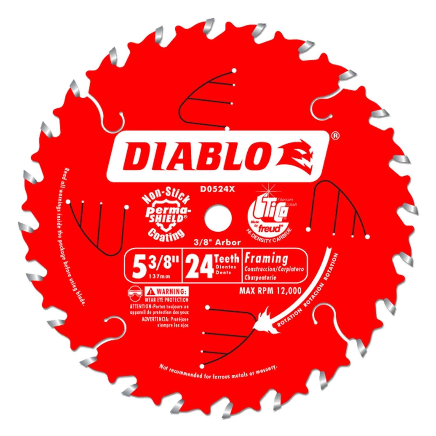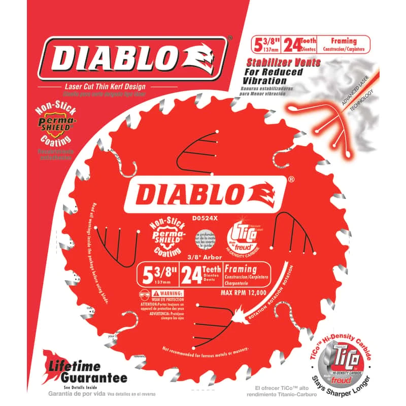 Diablo 5-3/8 In. D X 10 Mm TiCo Hi-Density Carbide Trim Saw Blade 24 Teeth 1 Pk