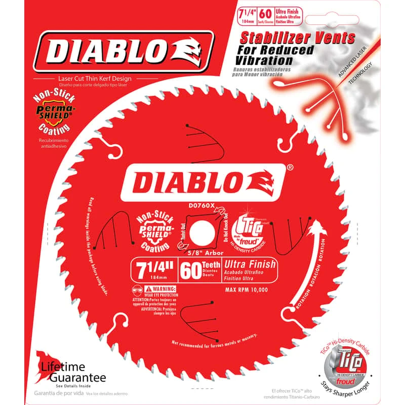 Diablo 7-1/4 In. D X 5/8 In. TiCo Hi-Density Carbide Circular Saw Blade 60 Teeth 1 Pk
