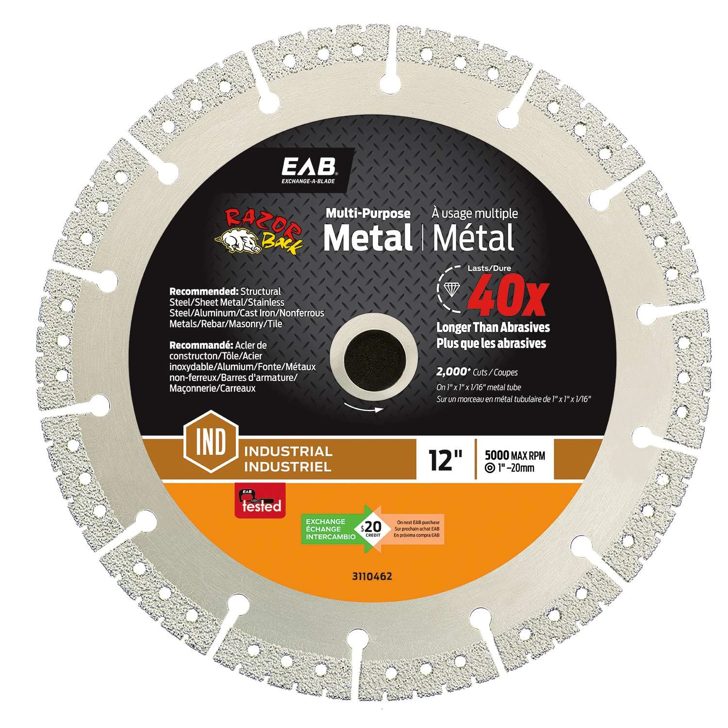 | Search Field | Exchange-A-Blade Razor Back 12 in. D X 1 in. Diamond Saw Blade 1 pc Saw Blades Circular Power Saw Blades POWER SAW BLADES DIAMOND SAW BLADES EAB TOOL COMPANY USA INC Exchange-A-Blade Razor Back 12__rexuom__in 12__rexuom__inch 1__rexuom__in 1__rexuom__inch 1__rexuom__pc 1__rexuom__piece 12×1 1×12 |