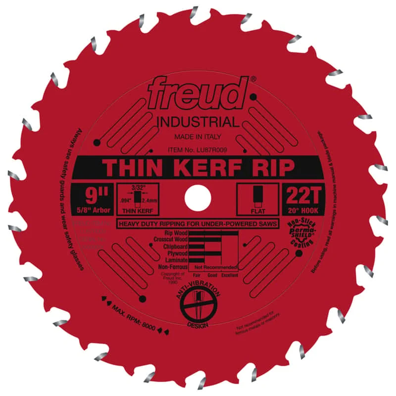 Freud 9 In. D X 5/8 In. Thin Kerf Rip TiCo Hi-Density Carbide Table Saw Blade 22 Teeth 1 Pk