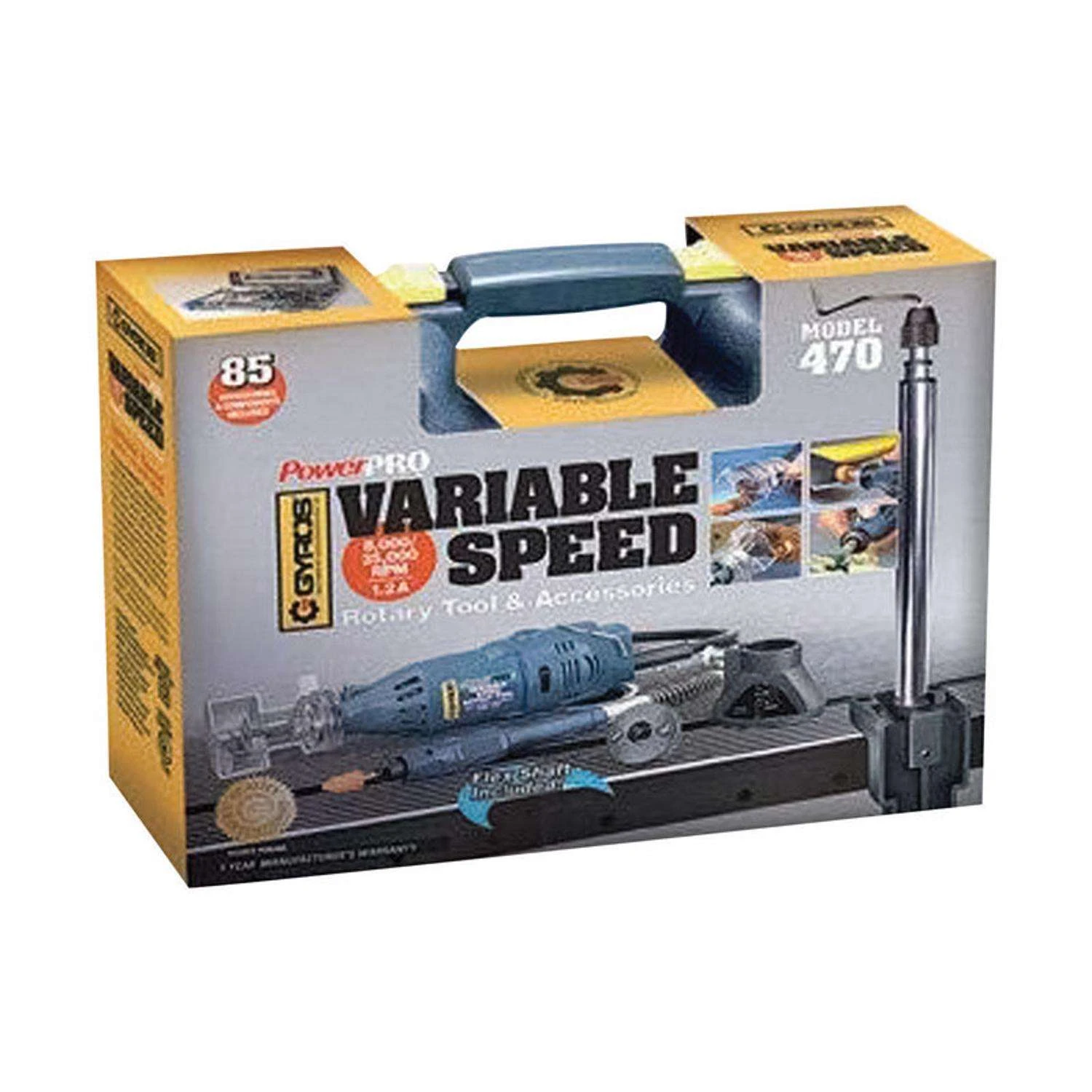 Gyros Tools Power Pro 1.2 Amps 85 Pc Corded Rotary Tool Kit (Battery & Charger)