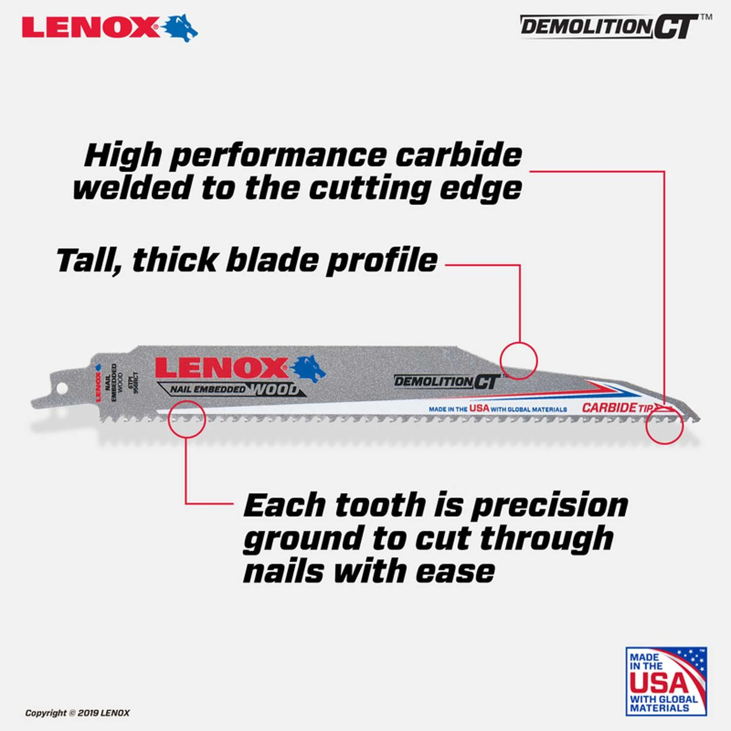 Lenox Demolition CT 9 In. Carbide Tipped Reciprocating Saw Blade 6 TPI 1 Pc