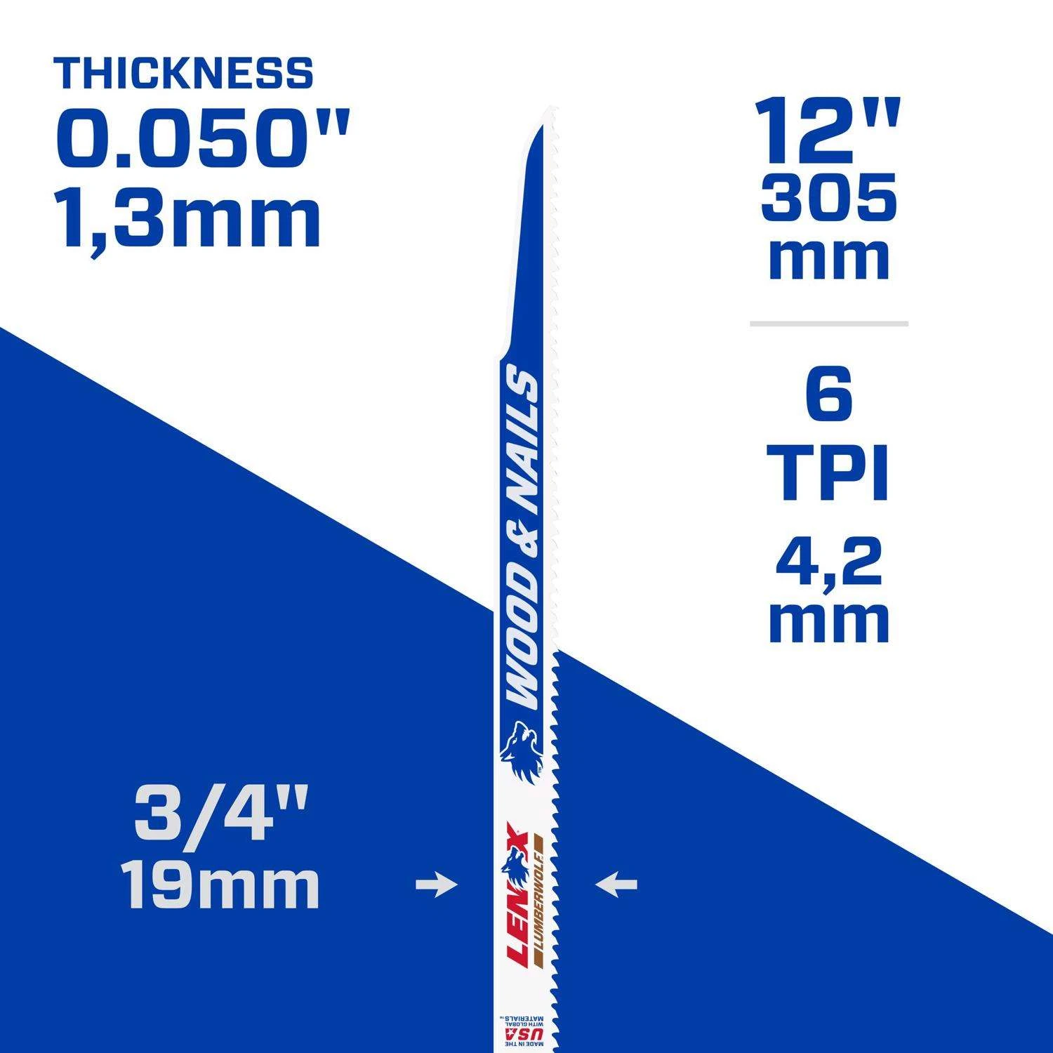 LENOX LUMBERWOLF 12 In. Bi-Metal Reciprocating Saw Blade 6 TPI 5 Pk