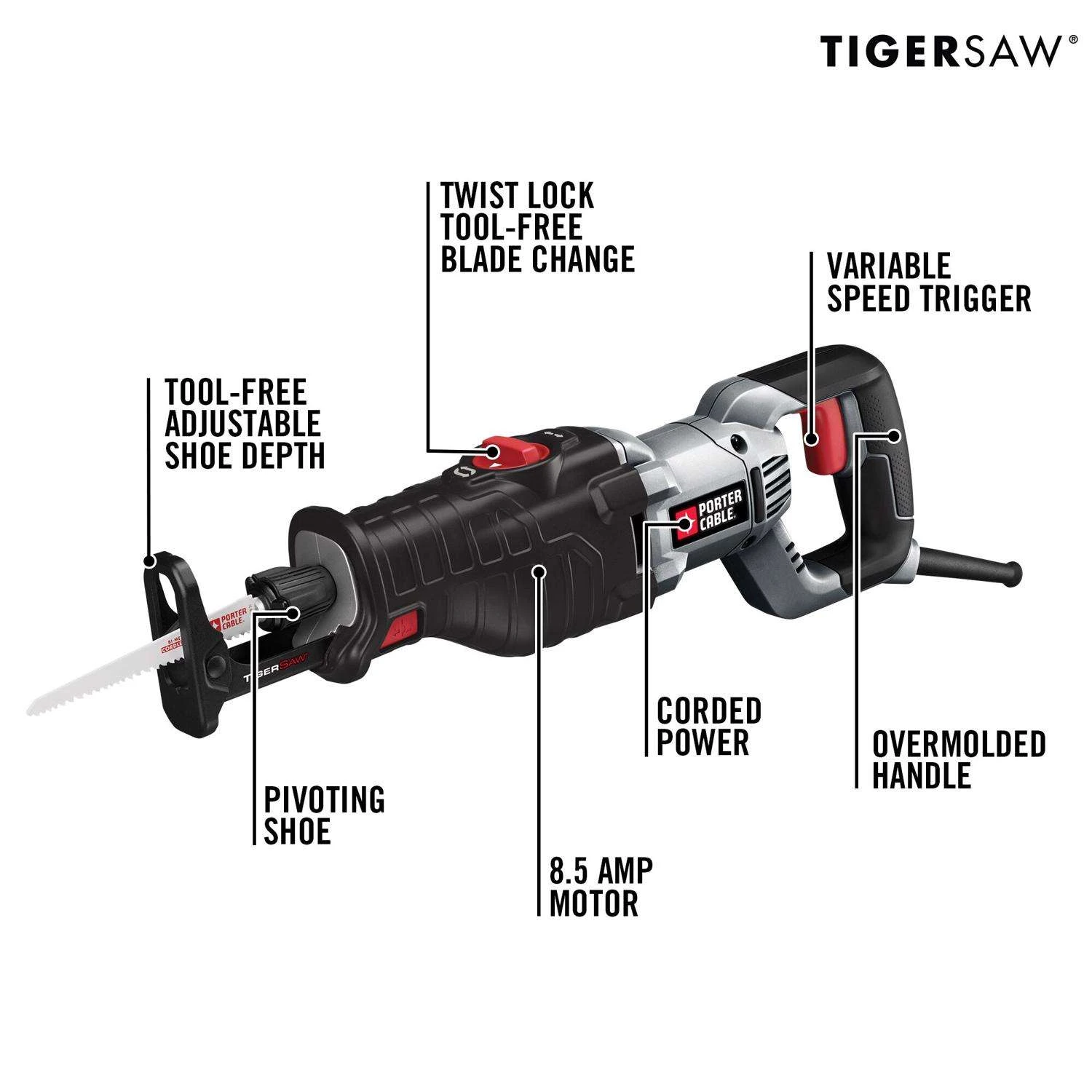 | Search Field | Porter Cable TigerSaw 8.5 amps Corded Brushed Orbital Reciprocating Saw Tool Only Power Tools Reciprocating Saws HEAVY-DUTY POWER TOOLS JIG/RECIPROCAL SAWS STANLEY/BLACK & DECKER Porter Cable TigerSaw |