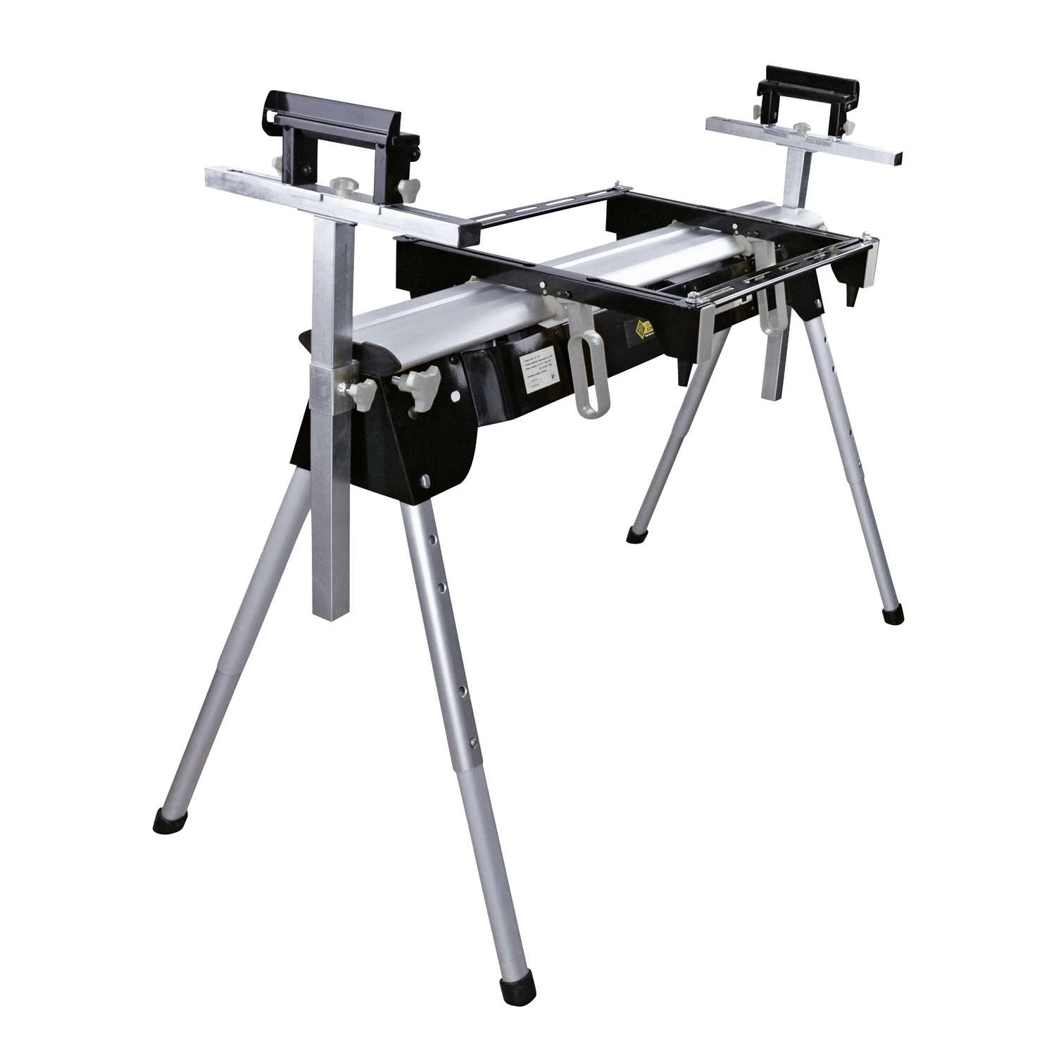 This universal design stand works with most brands of miter saws with adjustable height and mounting brackets for work support. Four work height Adjustable miter gauge Easy to cut
