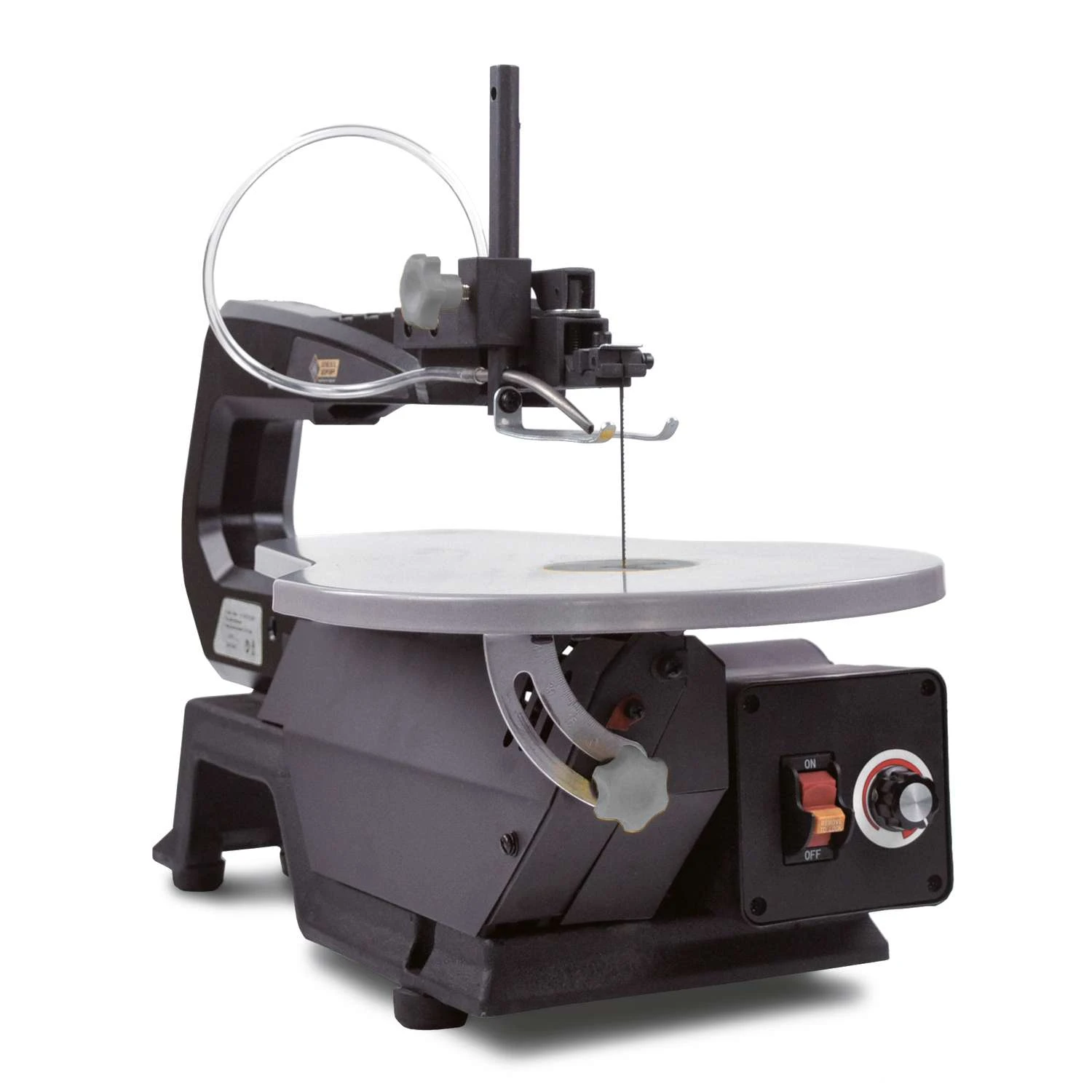The Variable Speed Scroll saw offers versatility and functionality for artful and intricate cuts. The cutting speed is easily set with precision dial on front of housing. Easy to use Adjustable miter gauge Easy to cut